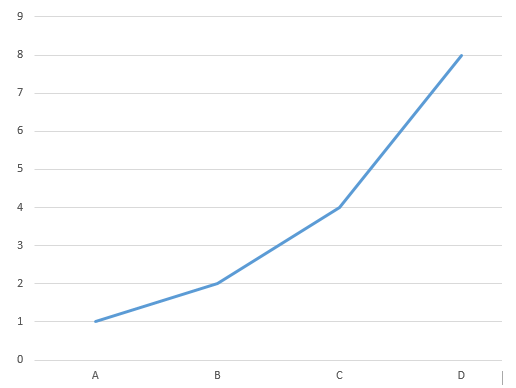 If the effort to go from each box to the next is a 2x the previous then this is the effort from going from A to D is diagrammed in the following chart: