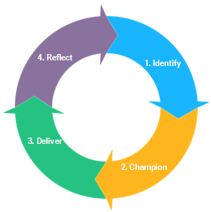 The MVIS is a cycle that repeats itself that has 4 stages: Identify, Champion, Deliver, Reflect
