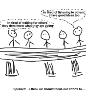 Common Language: Recently I worked on a project where I was using the phrase “data entry” to describe an action where “any user enters data using a graphical user interface”. One of the team members was having a very hard time following the discussion because to him “data entry” was specific to “data entry personnel” (people hired to do data entry), who used a specific data entry user interface that was different than the user interfaces used by others, this was because they didn’t need the pretty features as all they did was repetitive data entry. This is why it becomes very important that the team members have a common mental model and have developed a vocabulary that is understood by all as this helps develop a working culture where misunderstandings or unclear terms will be kept to a minimum.