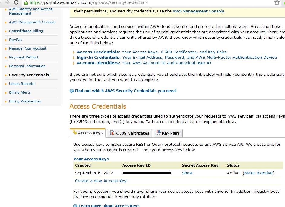 Once you sign up for Amazon Web Services; you need to obtain a few things from the security panel.